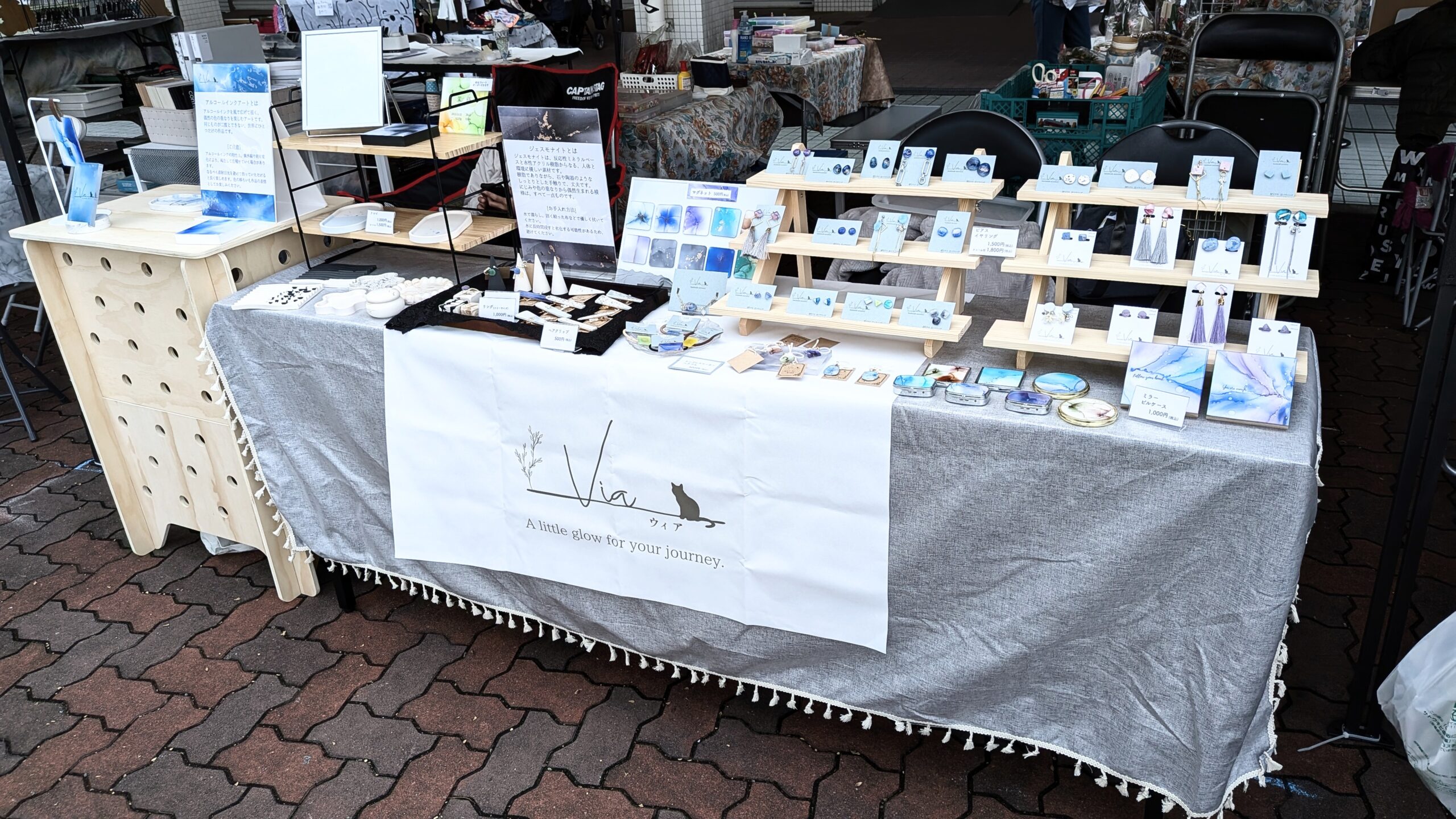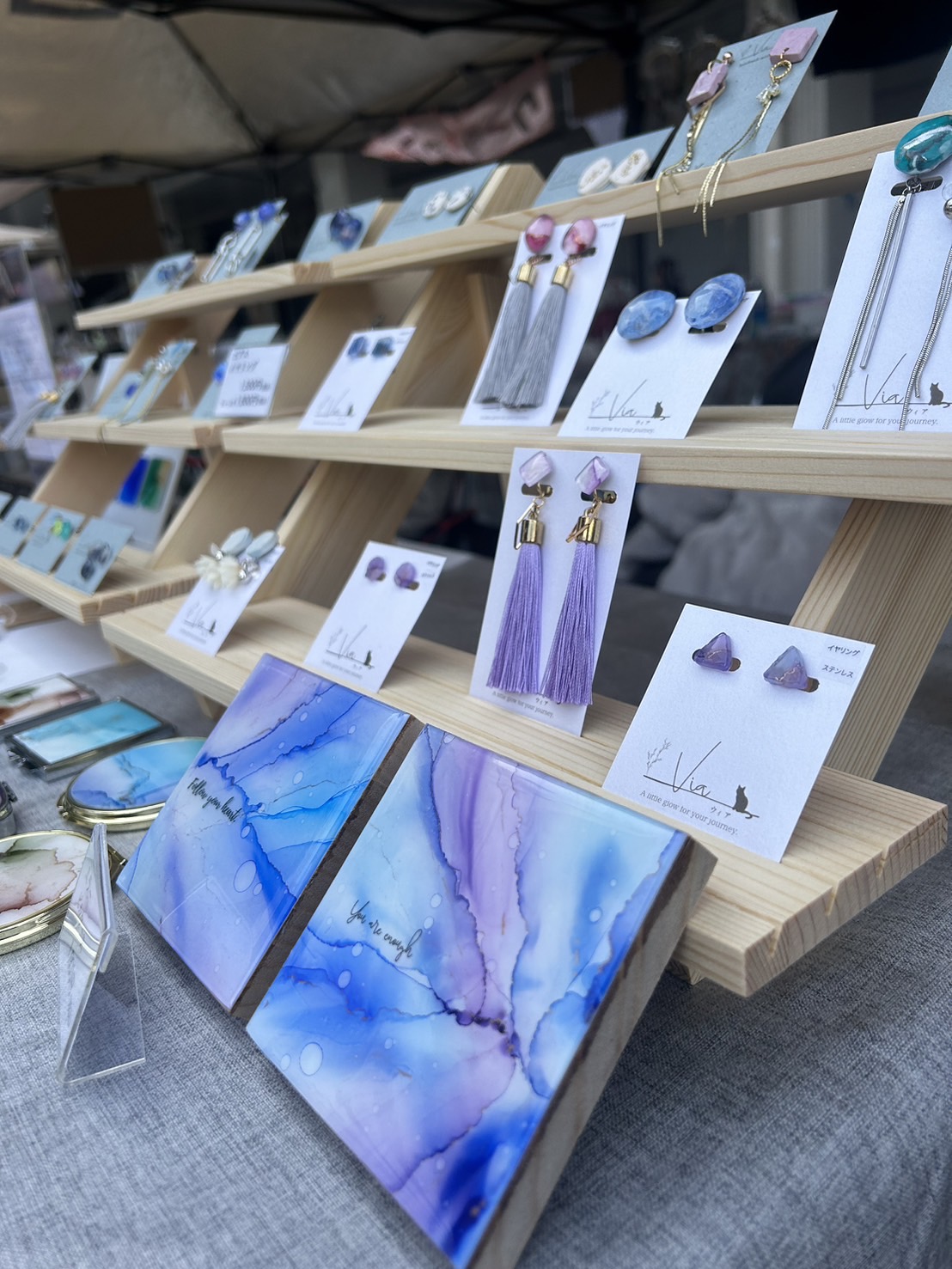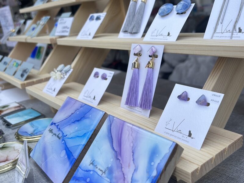 アルコールインクアートとジェスモナイトを使用したアクセサリーや雑貨の販売をしています。