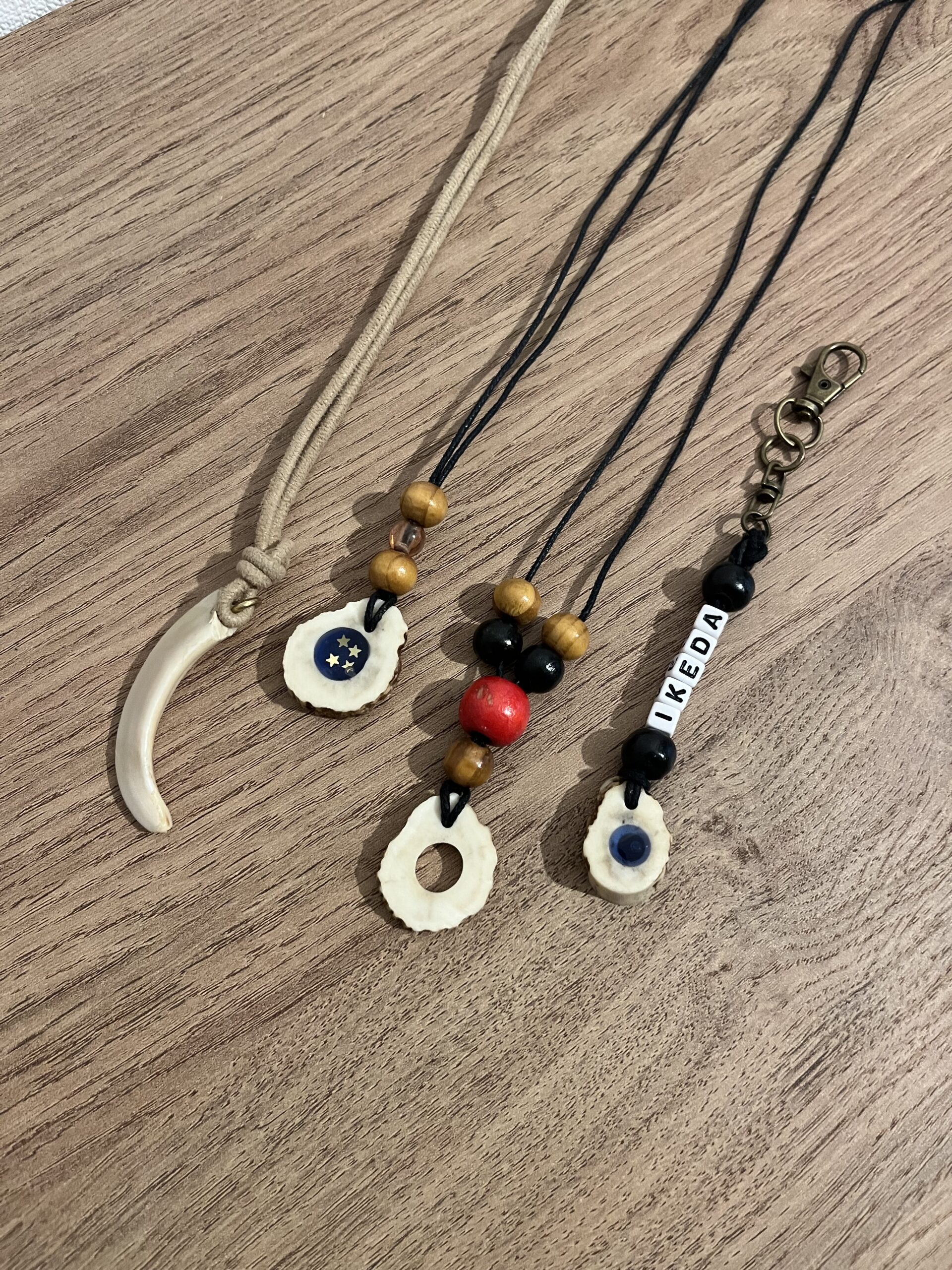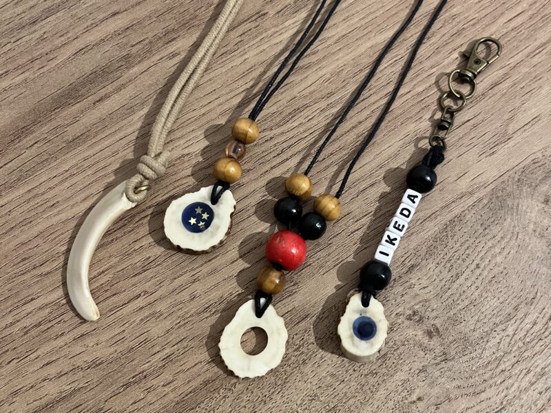 大阪の里山のめぐみ、主に鹿の角や小枝などを使って、アクセサリーや小物を作るワークショップをしています。