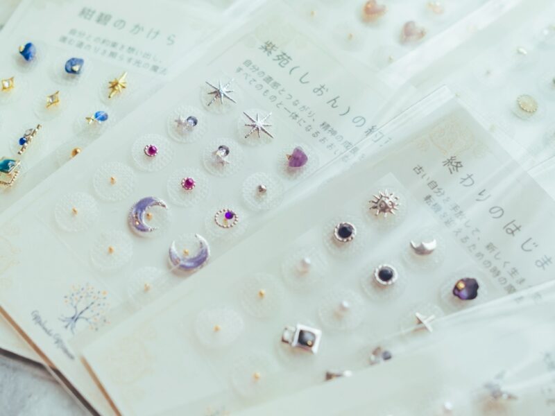 耳つぼジュエリーは、シンプルなセレクトから、カラータロットで導かれた色に合わせたオリジナルジュエリーまで幅広く対応。